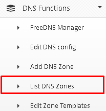 Değişiklikleri kaydettikten sonra DNS Functions altından List DNS Zones seçeneğine tıklıyoruz ;
