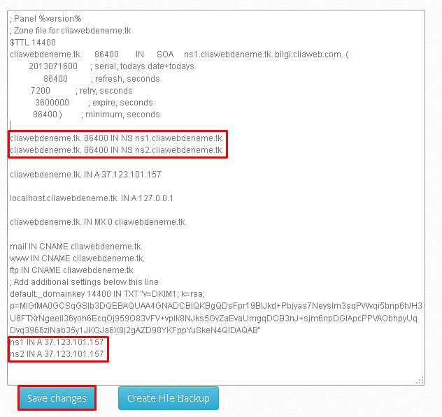 Örneğin biz bu makalede cliawebdeneme.tk alan adımız için nameserver kaydı oluşturuyoruz ;