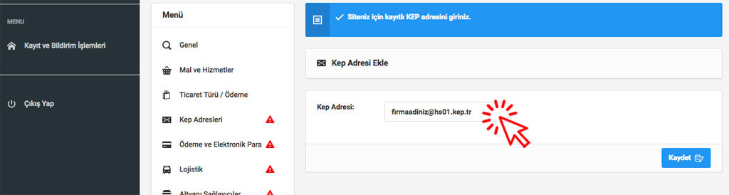 Yukarıdaki konu başlıklarında belirttiğimiz noktaların sisteme nasıl kayıt edileceğini birlikte adım adım inceleyelim. Adımlara başlamadan önce e-Devlet şifresi, KEP adresi ve MERSİS numarası aldığınızı varsayıyoruz. Eğer bunları almadıysanız öncelikle bu aşamaları tamamlamalısınız.