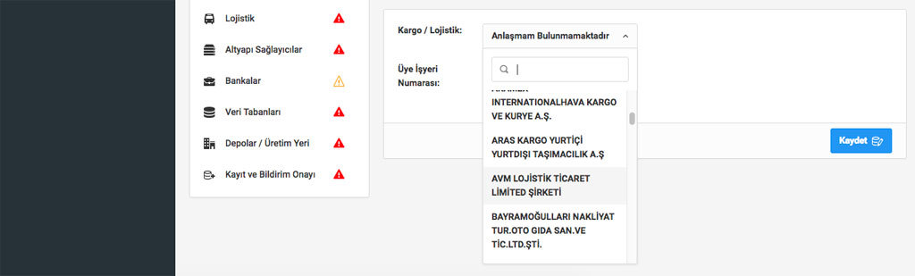 - Anlaşmalı Kargo Firması Bildirimi (Aras, MNG, Yurtiçi Kargo vb.)
