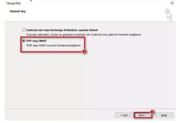 Açılan pencerede POP kutucuğunu işaretleyerek ileri butonuna tıklıyoruz.